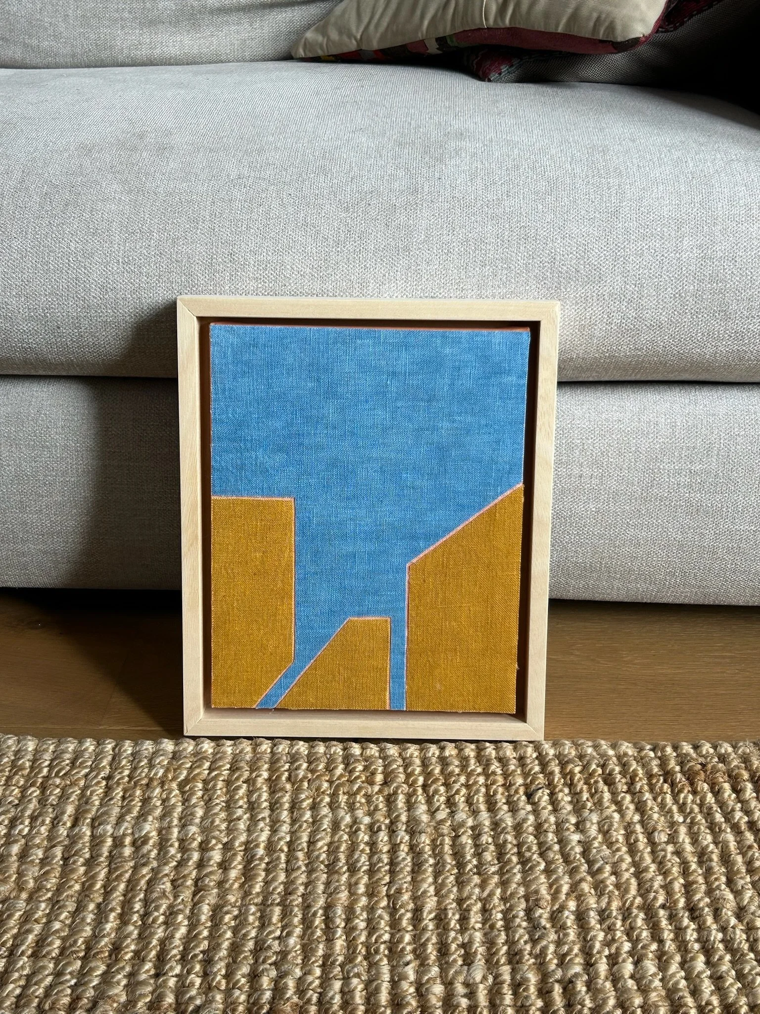Slide 1 Slide 1 (current slide) Slide 2 Slide 2 (current slide) Slide 3 Slide 3 (current slide) Slide 4 Slide 4 (current slide) Slide 5 Slide 5 (current slide) Daoroub Fabric: Irish LinenDyes: Indigo, Marigold, Annatto OrangeDimensions: 8 x 10 inches £250 (including frame)