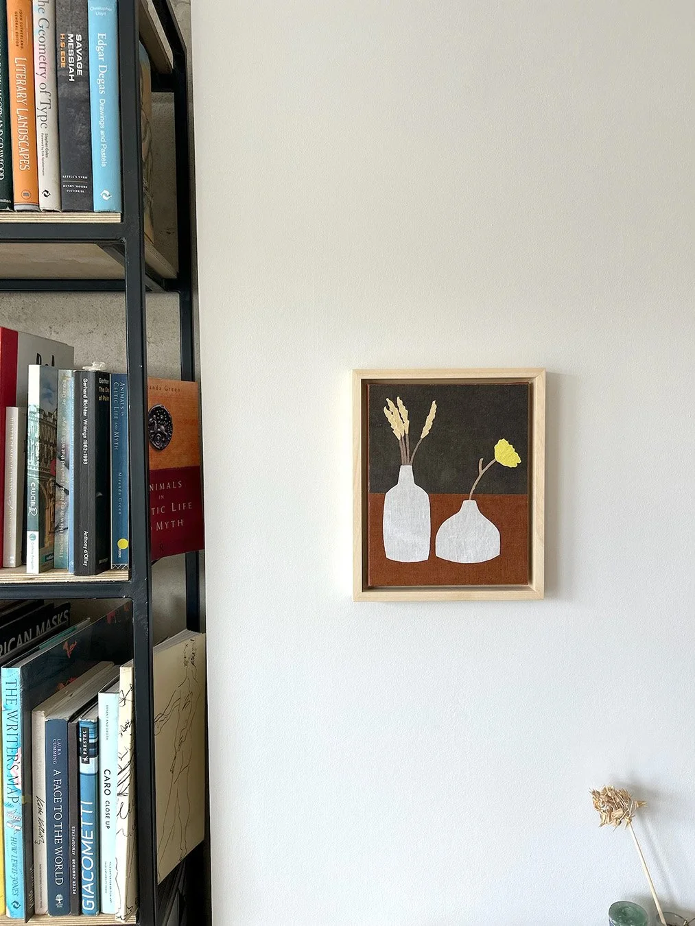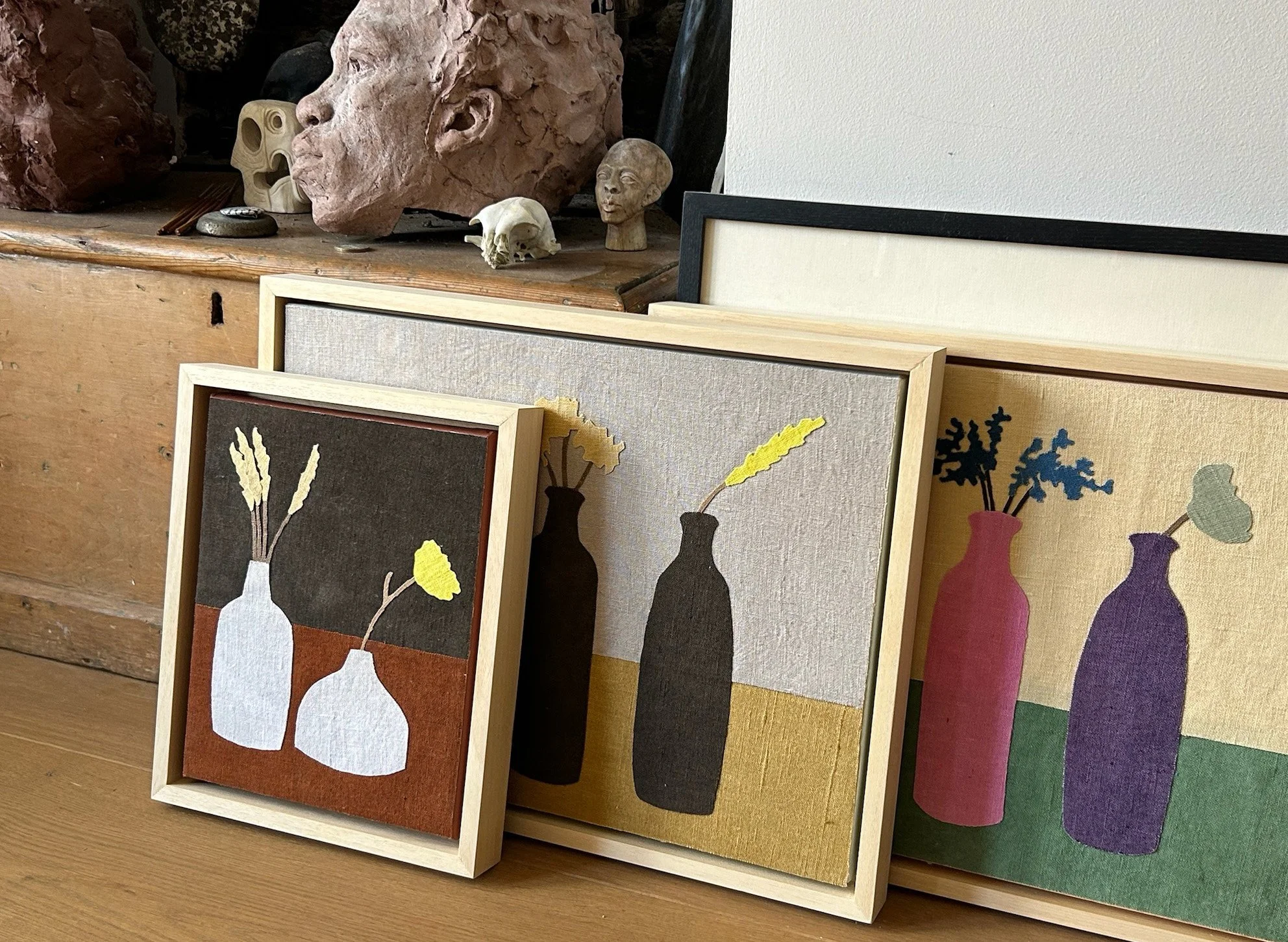 Slide 1 Slide 1 (current slide) Slide 2 Slide 2 (current slide) Slide 3 Slide 3 (current slide) Slide 4 Slide 4 (current slide) Slide 5 Slide 5 (current slide) Two Vases With Flowers Fabric: Irish LinenDyes: Black Tea, Nettle, Marigold, Weld, Cutch Dimensions: 8 x 10 £250 (including frame)